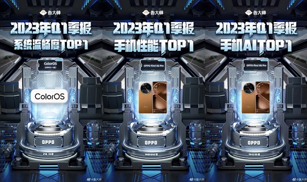 4月6日,鲁大师发布了2023年Q1季度报告,其中ColorOS系统以216.15分的成绩荣获Q1季度手机系统流畅度排行第一。OPPO Find X6 Pro 分别以1405592 、154235分的成绩拿下Q1季度手机性能、AI排行榜两项大奖。而此前公布的3月安兔兔安卓旗舰手机性能榜,OPPO连续三个月荣获性能跑分榜第一的佳绩。