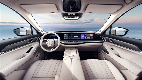 蓝山车型的内部采用了全新的造型,中控台上为一体式智慧娱乐屏,贯穿左右,跟理想ONE的设计思路如出一辙。蓝山在中控屏下方还设计有一排实体按键,集合了空调、双闪等一些常用的功能。需要指出的是,该车豪华感相当浓厚,门板内侧、中控台上等多处均使用了木纹装饰,前排座椅靠背还设计有小桌板,副驾驶也是时下流行的“皇后座”、“女王副驾”,配有腿托,且座椅可大角度躺倒,是否能够全平目前暂时不知。