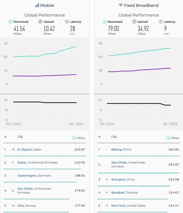 Ookla公布2023年Q1互联网表现报告:北京固定宽带最快