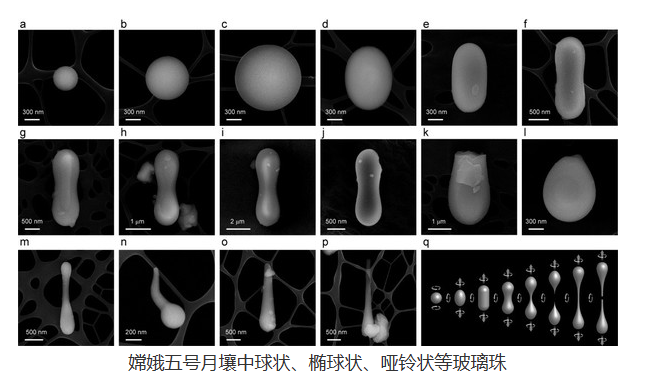研究人员对嫦娥五号月壤样品中的玻璃物质进行了综合分析,发现月球表面存在多种转变路径的玻璃起源,包括球状、椭球状、哑铃状等旋转形状的玻璃珠。他们还发现,这些玻璃材料的形成是由于月球表面频繁遭受陨石及微陨石撞击,导致矿物熔化和快速冷却所致。