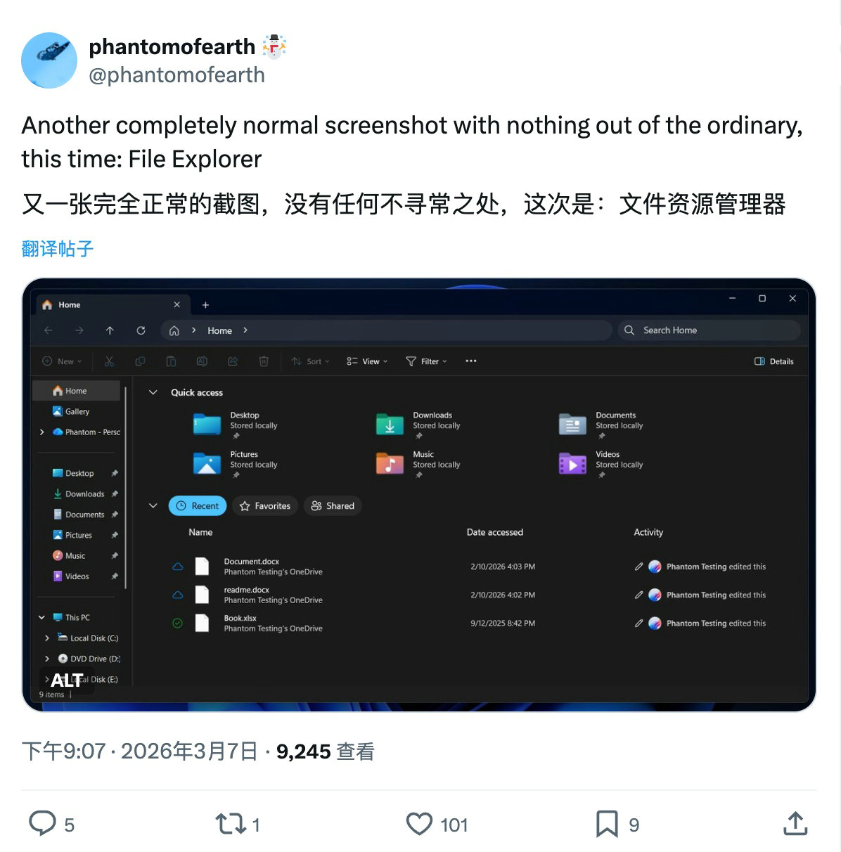 随后不少用户反馈,文件资源管理器在加载文件和文件夹前会短暂出现白色空白屏幕。这一问题影响到“主页”“图库”等多个界面。微软之后通过一次累积更新修复了大部分闪屏情况,“此电脑”页面仍然会出现问题。