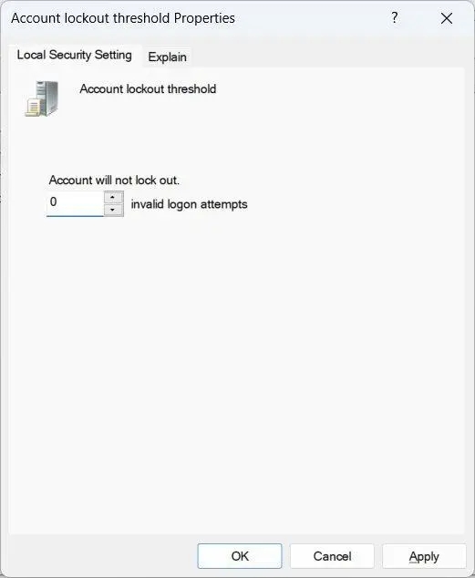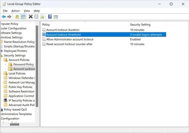 方法4、禁用账户锁定阈值