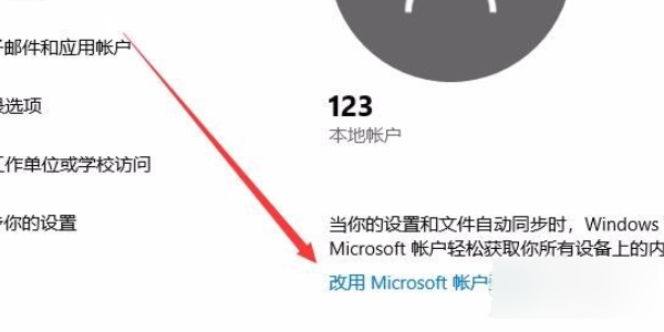 4、在打开的帐户设置窗口,点击左侧边栏的“信息”菜单项,然后点击右侧的“改用Microsoft帐户登录”快捷链接。