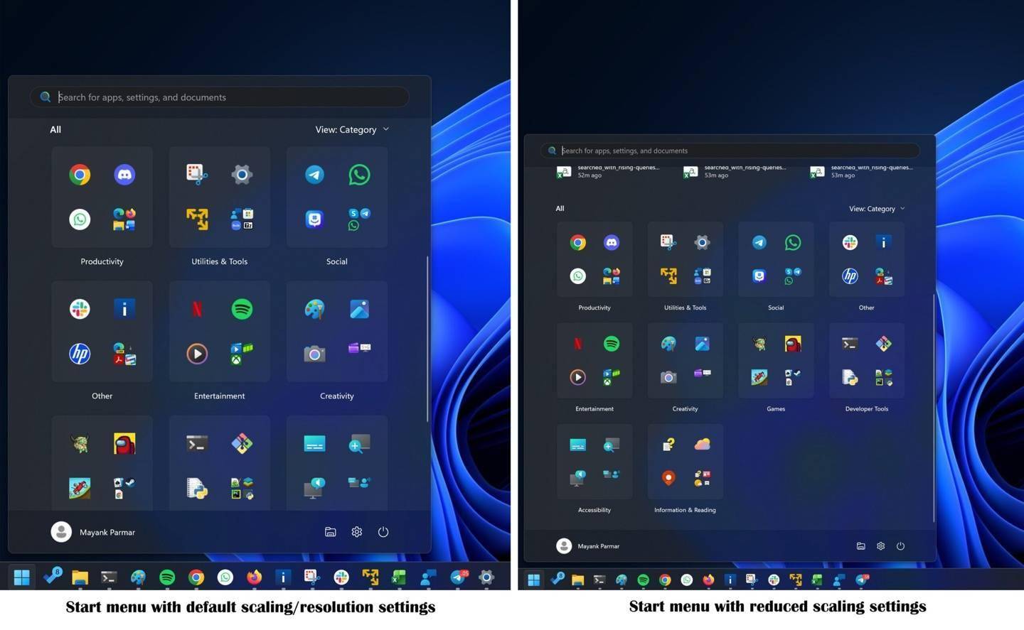 新版开始菜单采用了类似 iOS 的应用分类视图,虽能减少查找点击次数,但目前暂不支持用户手动调整分类或调整菜单尺寸。