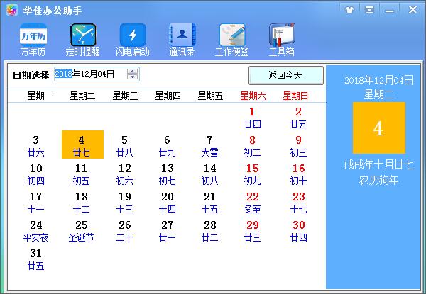 万年历可以显示节日、节气及农历相关信息。