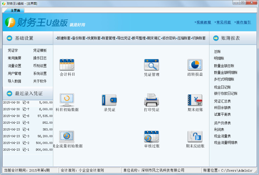 财务王U盘版是一款功能非常强大的财务软件,这款财务软件拥有记账、查账、自动结转损益、自动生成账簿报表等多种功能,适合小微企业记账和代理记账。