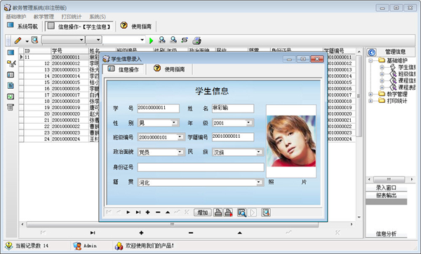 宏达教务管理系统是一款十分好用的教务管理软件。宏达教务管理系统可以将学生的身份信息、班级信息 、课程信息、课程图表等进行数据登记,方便用户查询学生相关新年喜。同时软件还可以针对不同的班级制定不同的课程表,进而更好的管理学校。
