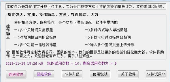 批量裂变模式:软件可以快速性分裂多个宝贝,上传操作带有数据记忆功能,可加快裂变数据上传速度。