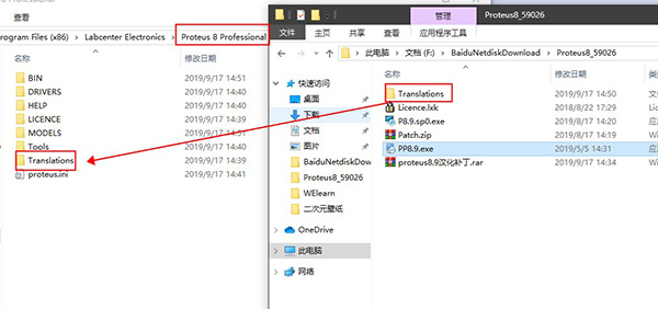 1、下载解压,得到proteus pro 8.9 sp0原程序、patch破解文件和汉化补丁;