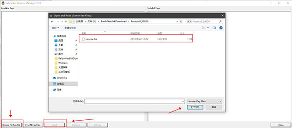 3、在许可证安装界面,浏览指定patch破解文件夹中的Licence.lxk许可证文件,点击install安装许可证;
