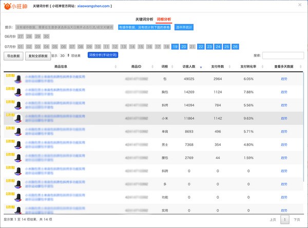 小旺神插件是一款非常实用的电商运营工具,能够将指数自动转换,还原生意参谋指数,一键导出数据。该工具能够智能帮您优化标题,词根自动最优拆分、智能统计,也支持手工拆分。还将指数转化实数,所有数据整理成表格。数据透视,成交笔数,直通车总消费金额,对比关键词,清晰明了。