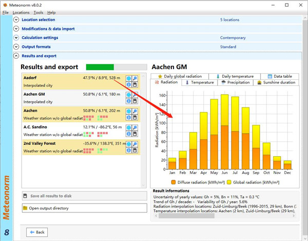 Meteonorm破解版提供每小时甚至每月的分钟值。