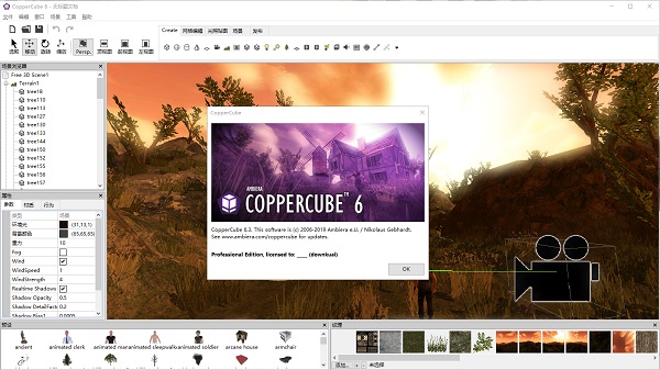 Coppercube 6中文版是强大的3D游戏场景制作软件,软件可以制作出简单模型到完整3D游戏。软件的功能很丰富,除了基础的功能外,还具有后期处理效果、视频播放、CLI和可自定义的启动徽标、无限的场景和应用、没有收入限制、可定制的加载屏幕标志以及命令行界面等优势。同时还可以制作出Windows、MacOS应用程序、Android应用程序。