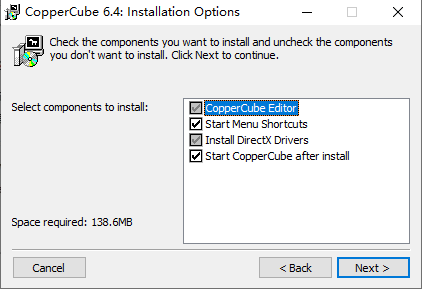 CopperCube是一个完整的3D创作工具,其中包括创建用于多个平台的游戏所需的所有功能。而且重量轻:整个编辑器(包括所有内容)仅需要70 MB,完成的游戏只是一个小的.exe文件。如果是WebGL,则只有200 KB大小的.js文件。
