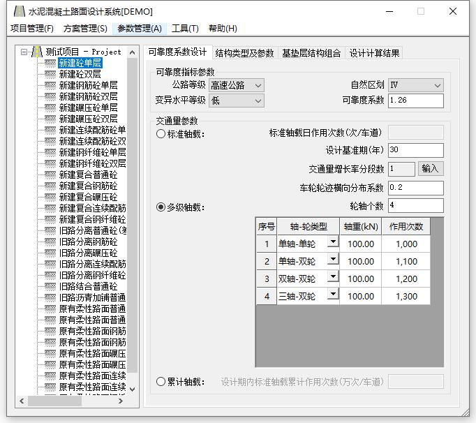 6、海地水泥路面设计系统可以进行新建普通混凝土面层、钢筋混凝土面层、碾压混凝土面层、连续配筋混凝土面层、钢纤维混凝土面层、具有沥青上面层的复合路面以及旧水泥混凝土路面加铺层的设计。
